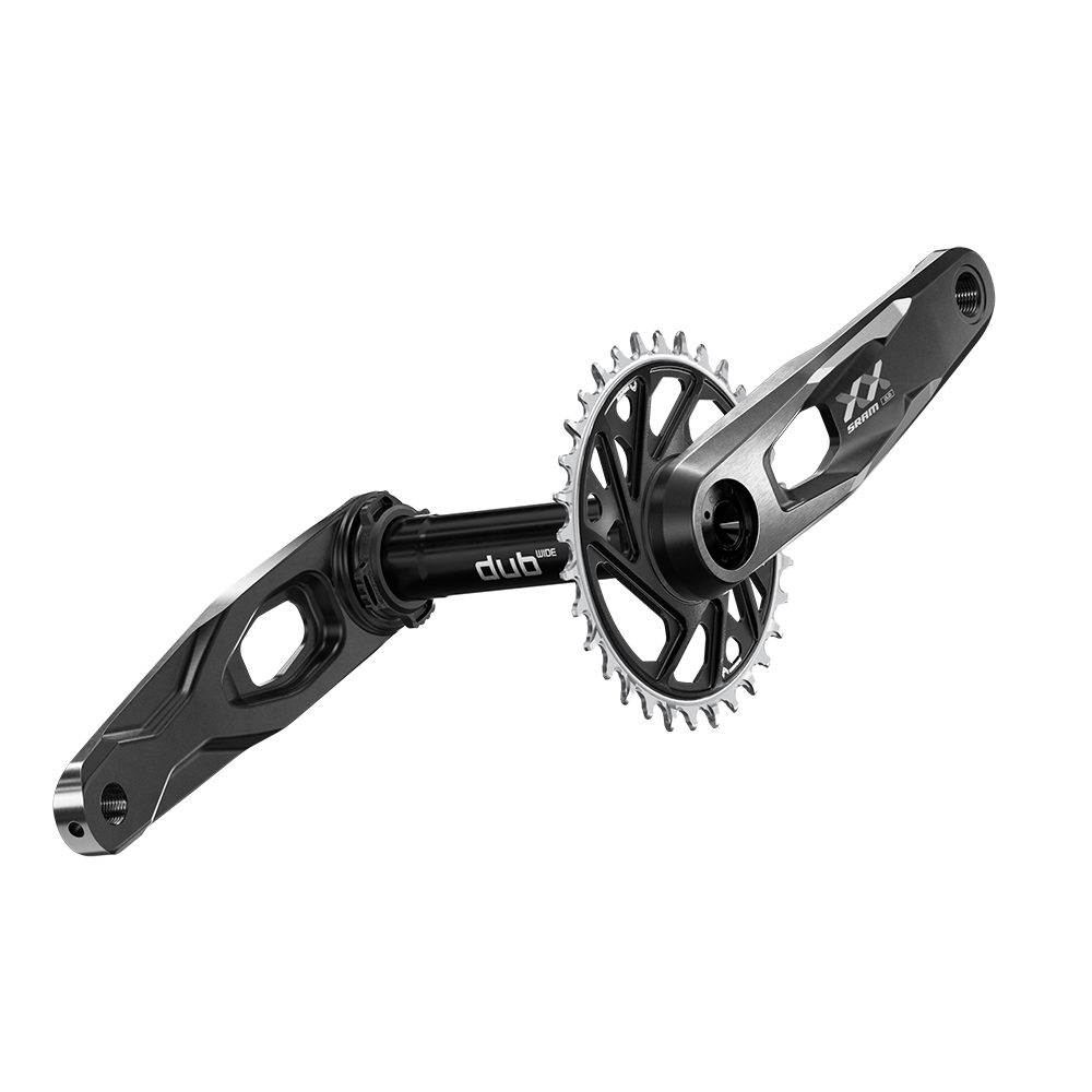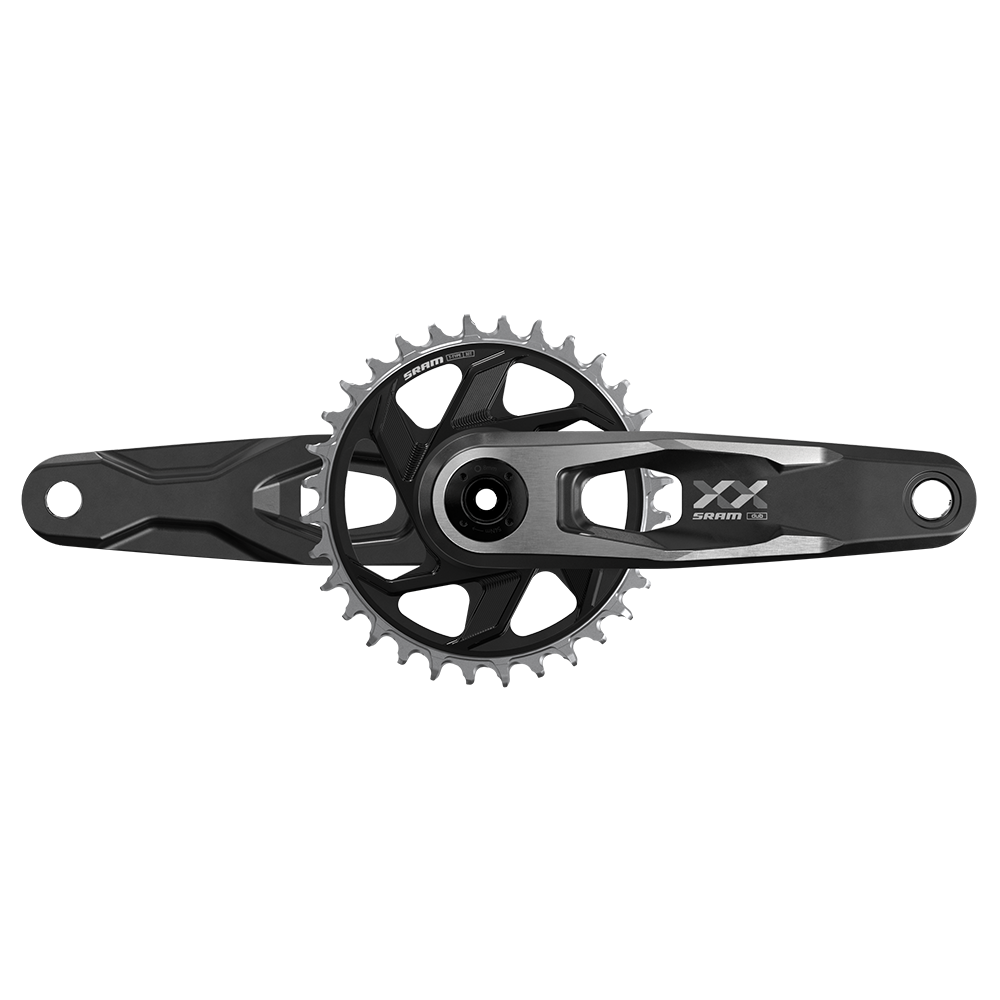 Nejvyšší odolnost a výkon pro downhill přichází s novými klikami XX DH Transmission. Vycházeli jsme z našich nejlepších hliníkových klik a od základu je navrhli jako účelový DH set s nejlepším poměrem pevnosti a hmotnosti ve své třídě. Robustní ramena jsou dostupná v postupně kratších délkách až do 150 mm a mají obráběné plochy v místech s vysokým opotřebením a rizikem kontaktu s kameny, což pomáhá udržet kliky déle jako nové. Zvýšená odolnost proti ohybu a nárazům je podpořena zcela novým převodníkem XX DH T-Type pro řetězovou linku 56,5 mm, který je navržen tak, aby odolal těm nejtěžším požadavkům downhillového ježdění.