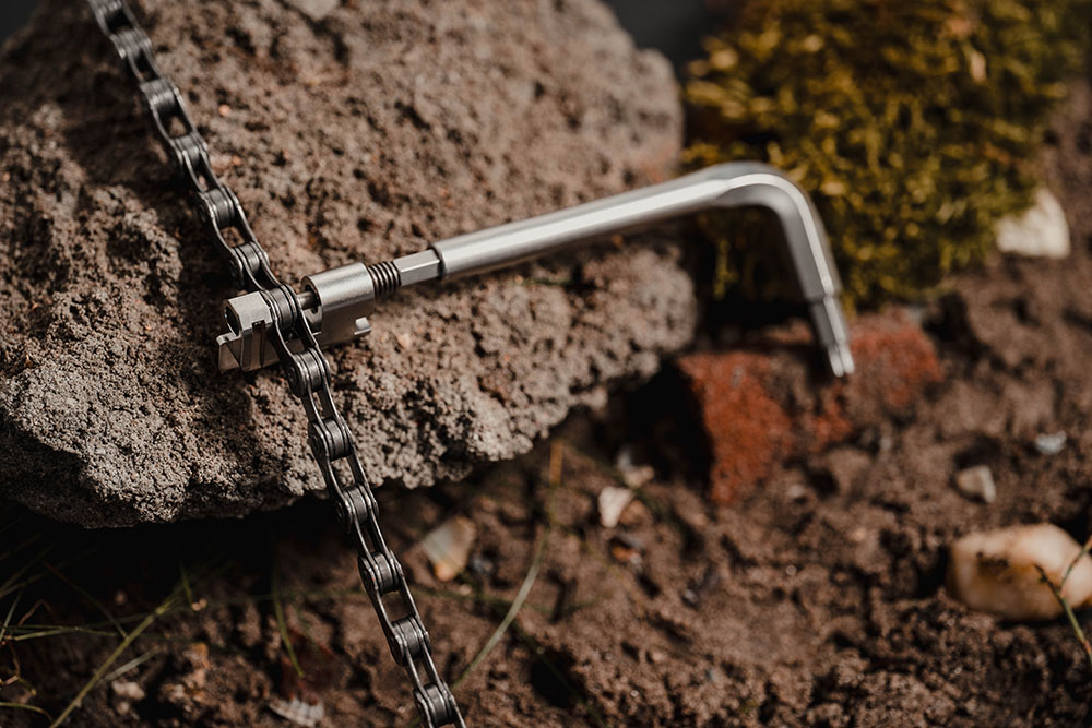 Dalším výrazným prvkem je propojení nýtovače řetězu s montpákou pro úsporu místa a také magnetická kompatibilita s Essential 8. Všechny jednotlivé komponenty jsou multifunkční - nýtovač řetězu lze použít jako klíč na dráty kol a tělo ventilku, montpáka má integrovaný prostor pro přichycení dvou spojek řetězu.