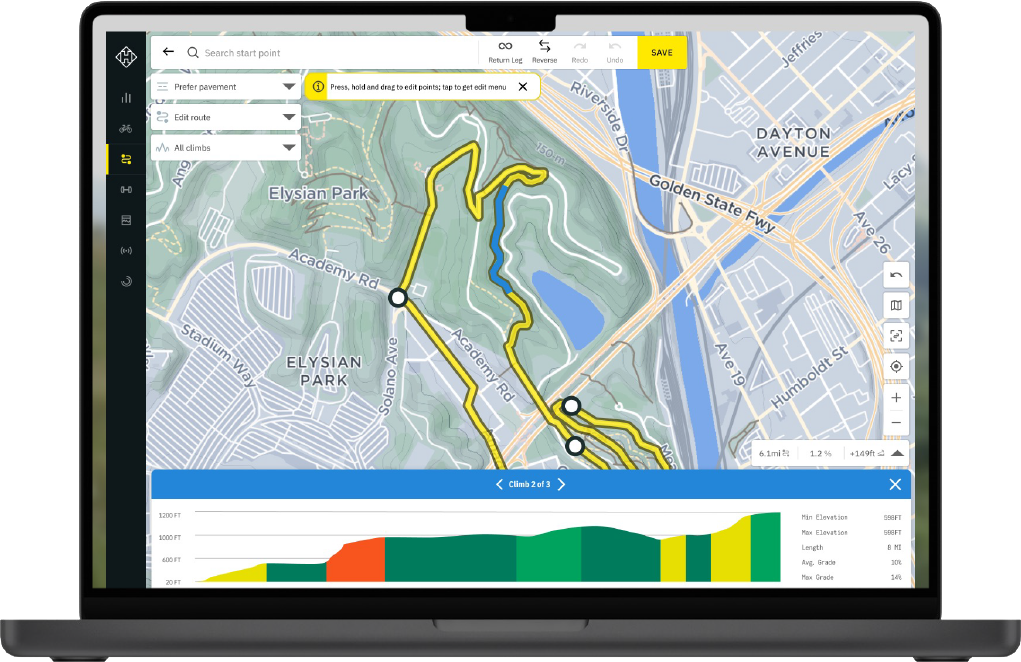Navigace patří mezi nejsilnější stránky Hammerhead Karoo. Nejde jen o zobrazení trasy, ale o komplexní navigační systém, který funguje rychle, přesně a spolehlivě i v náročných podmínkách. Ať už jedete podle předem připraveného GPX souboru, nebo se rozhodnete změnit trasu během jízdy, Karoo vás nenechá na pochybách, kudy pokračovat.