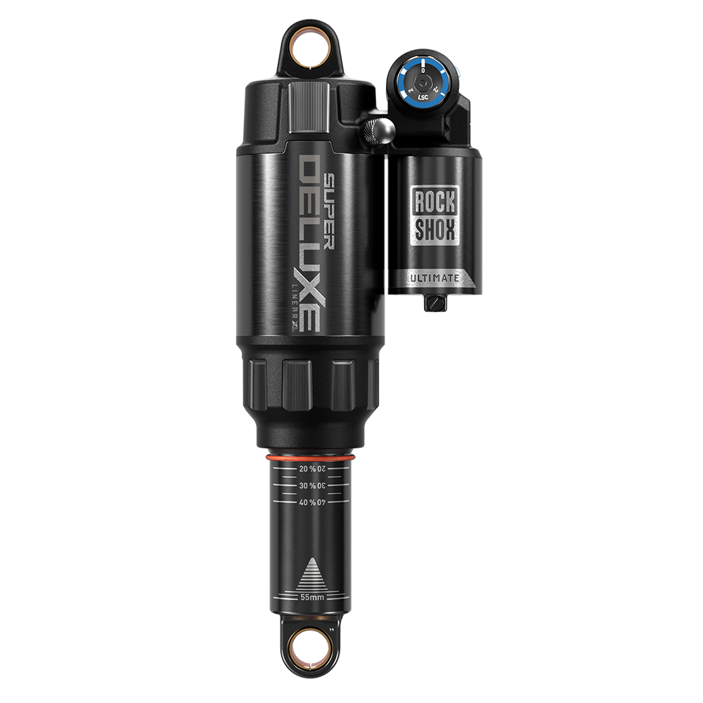 Super Deluxe Ultimate kombinuje závodní výkon s univerzální konstrukcí pro jakýkoliv trail. Vzduchové pružení LinearXL přináší konzistentní projev, nový systém dorazu a vyšší maximální tlak. Tlumení RC2T s nezávislým nastavením komprese HSC/LSC nabízí rychlé a intuitivní nastavení, zatímco nové ladění pístu zajišťuje podporu ve střední části zdvihu.